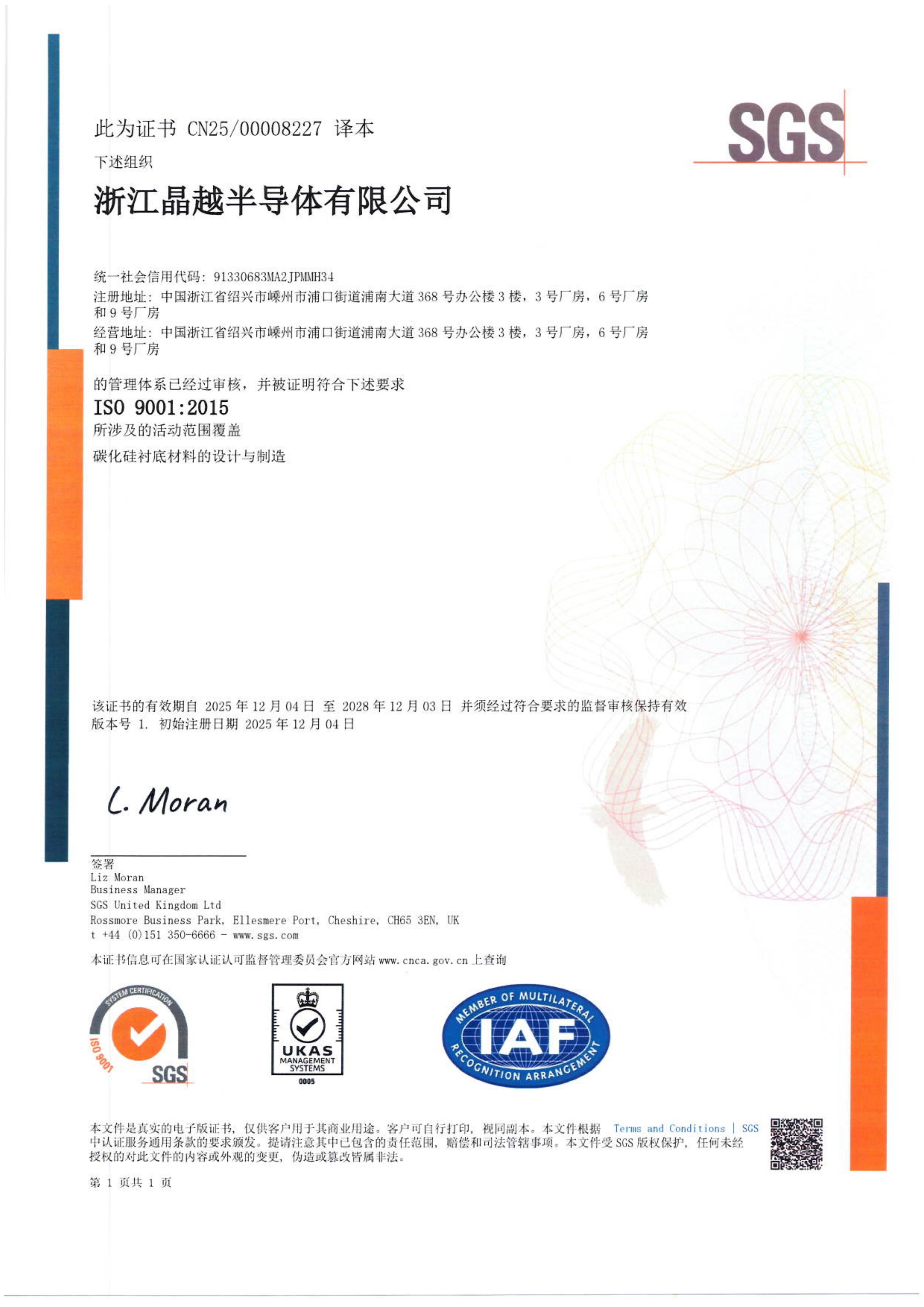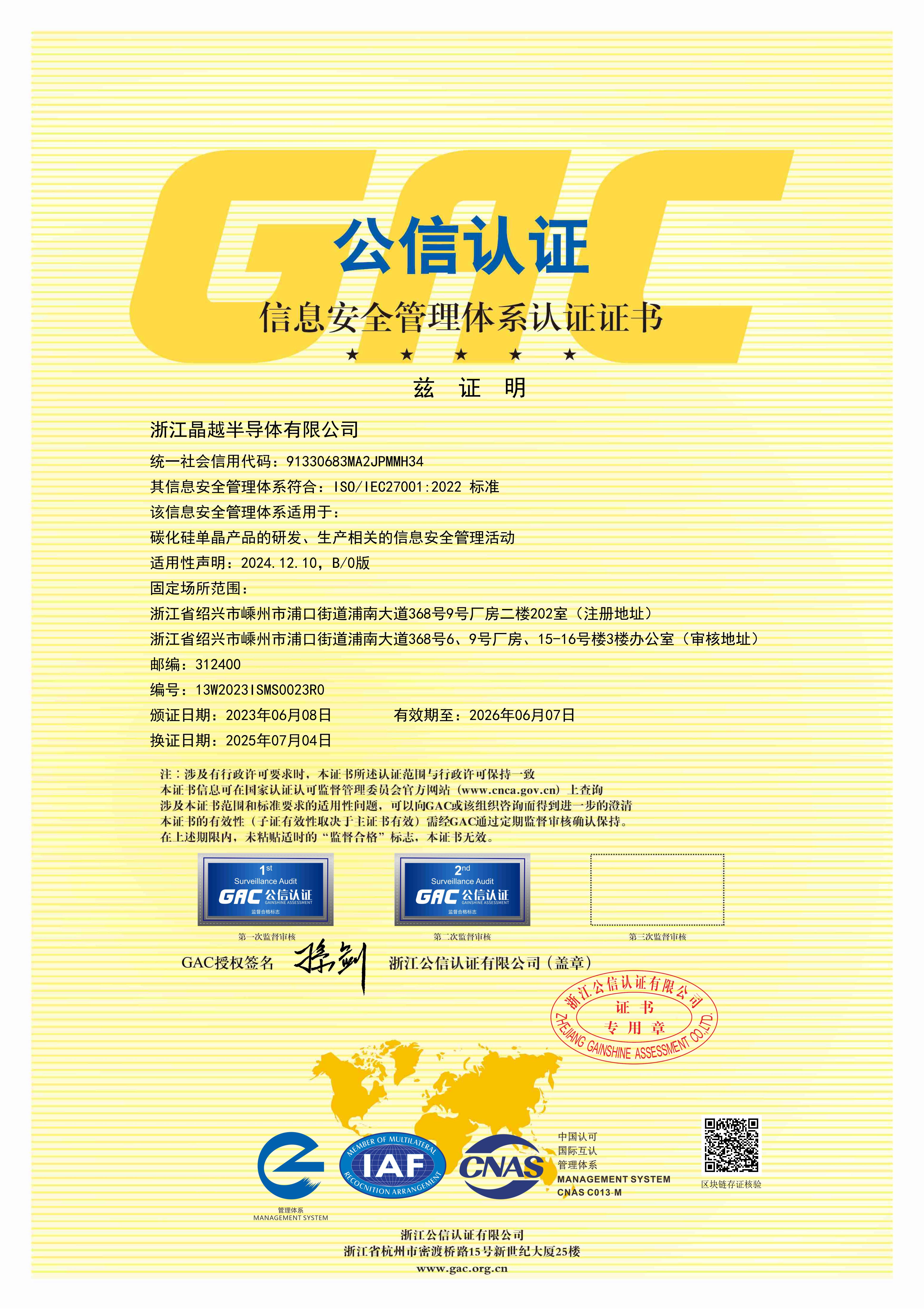 浙江晶越半导体有限公司成立于2020年7月,坐落于绍兴嵊州市经济技术开发区,注册资本2.04亿,是一家专业从事高品质8-12英寸碳化硅晶锭、籽晶及衬底研发、生产的高科技半导体公司。公司以服务于第三代半导体制造和汽车关键器件客户为导向,以高质量SiC产品制造技术为依托,在红杉资本等资本和产业方加持下,力求成为新一代半导体材料领军企业。